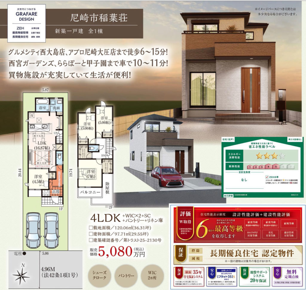 阪神本線 出屋敷駅 徒歩18分 JR東海道・山陽本線 立花駅 徒歩21分 バス(西難波中 乗11分 停歩5分) |