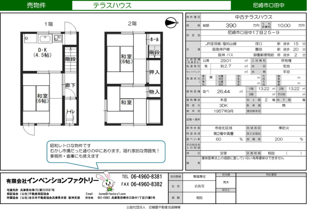 兵庫県尼崎市 口田中1丁目 口田中 テラスハウス |